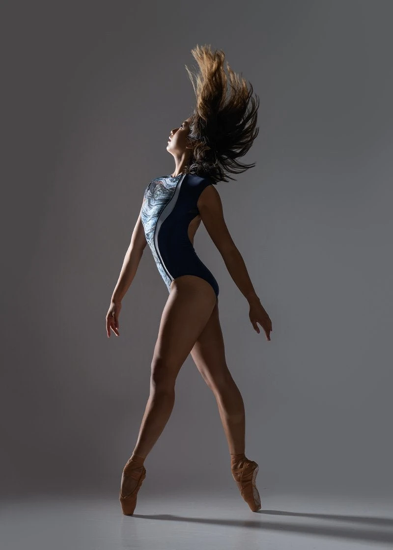 Featuring a elegant high scoop neck and beautifully contrasting blue marble print, the Conservatory Garden Leotard will have you dancing as if through a field of flowers. The S-curve split design of the bodice offers a figure-flattering fit, while the open back and cap sleeves add a feminine touch.