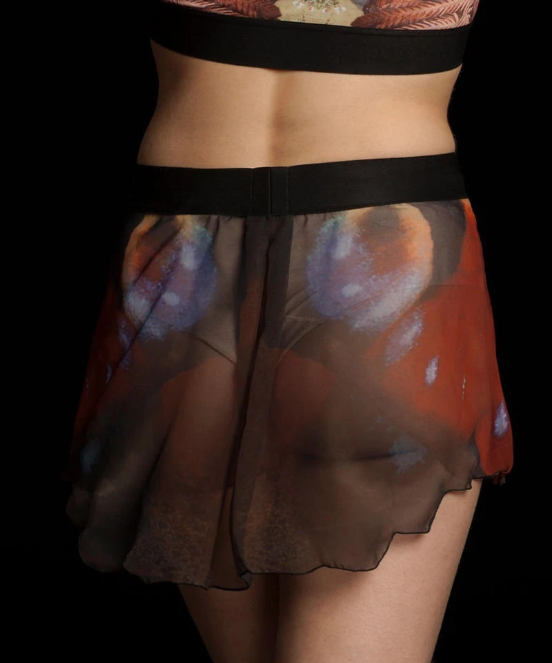 Inspired by the Victorian butterfly cabinets collection, the prints of these short rehearsal skirts mimic the pattern of tropical and subtropical butterflies