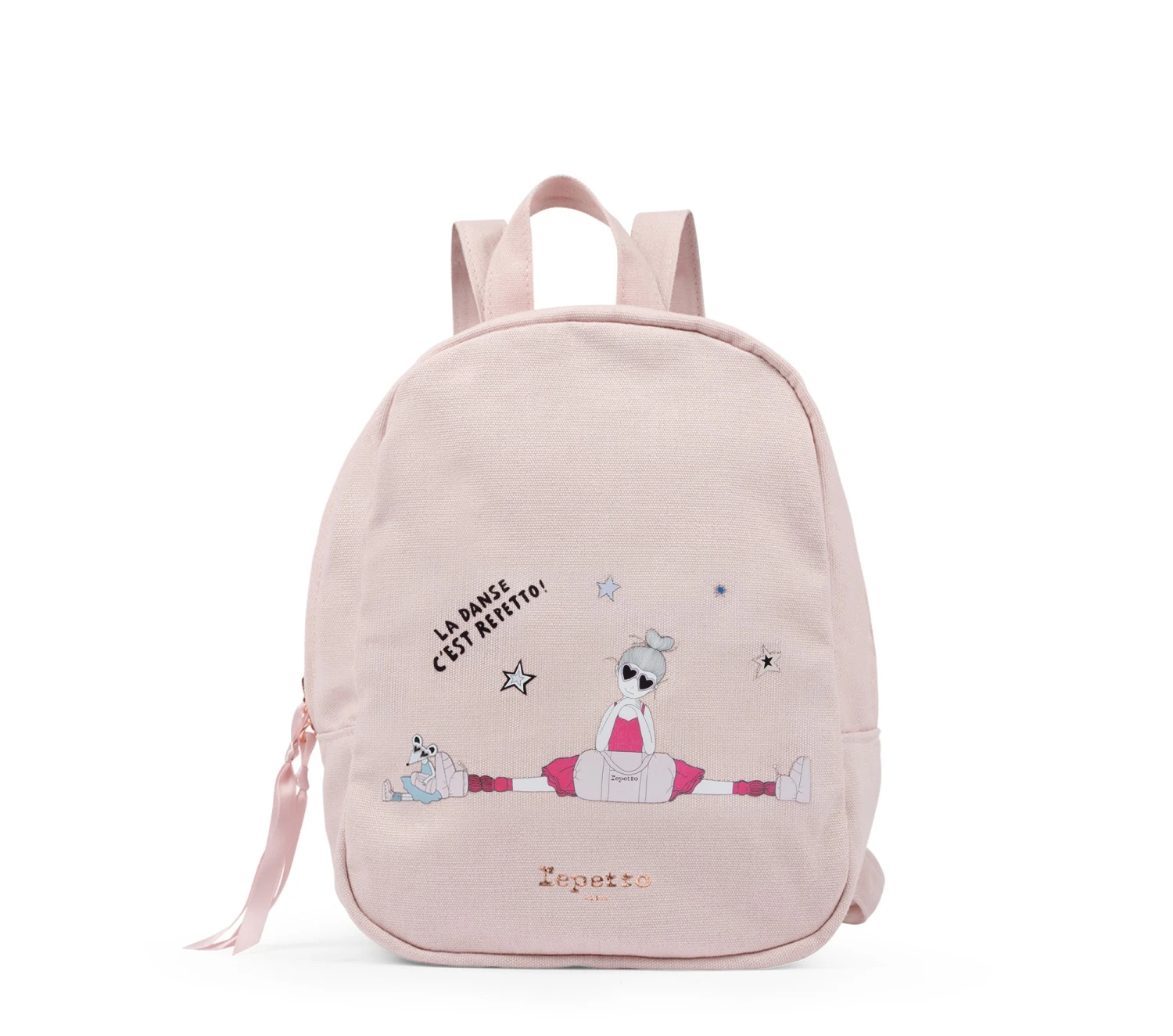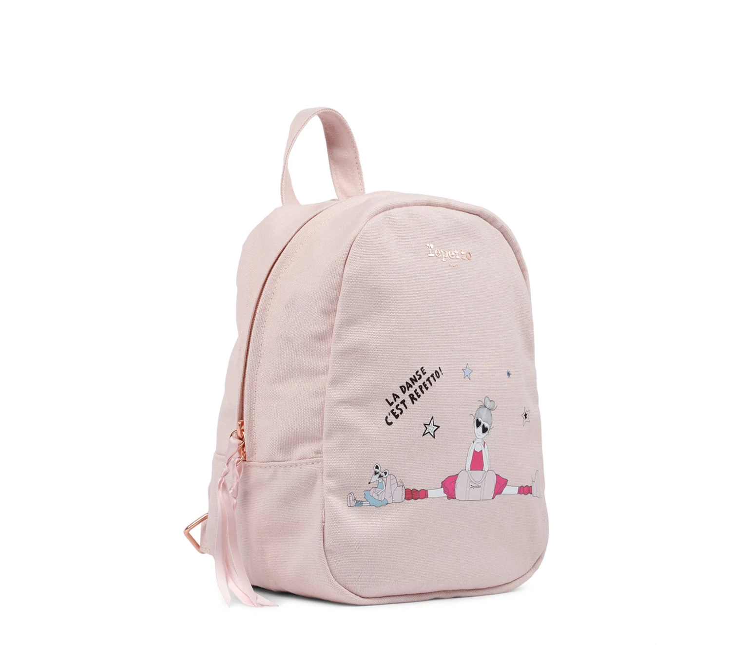Details : double zip closure. Adjustable straps. Graphic fantasy dancer. One interior patch pocket. Rose gold Repetto logo. Unlined.