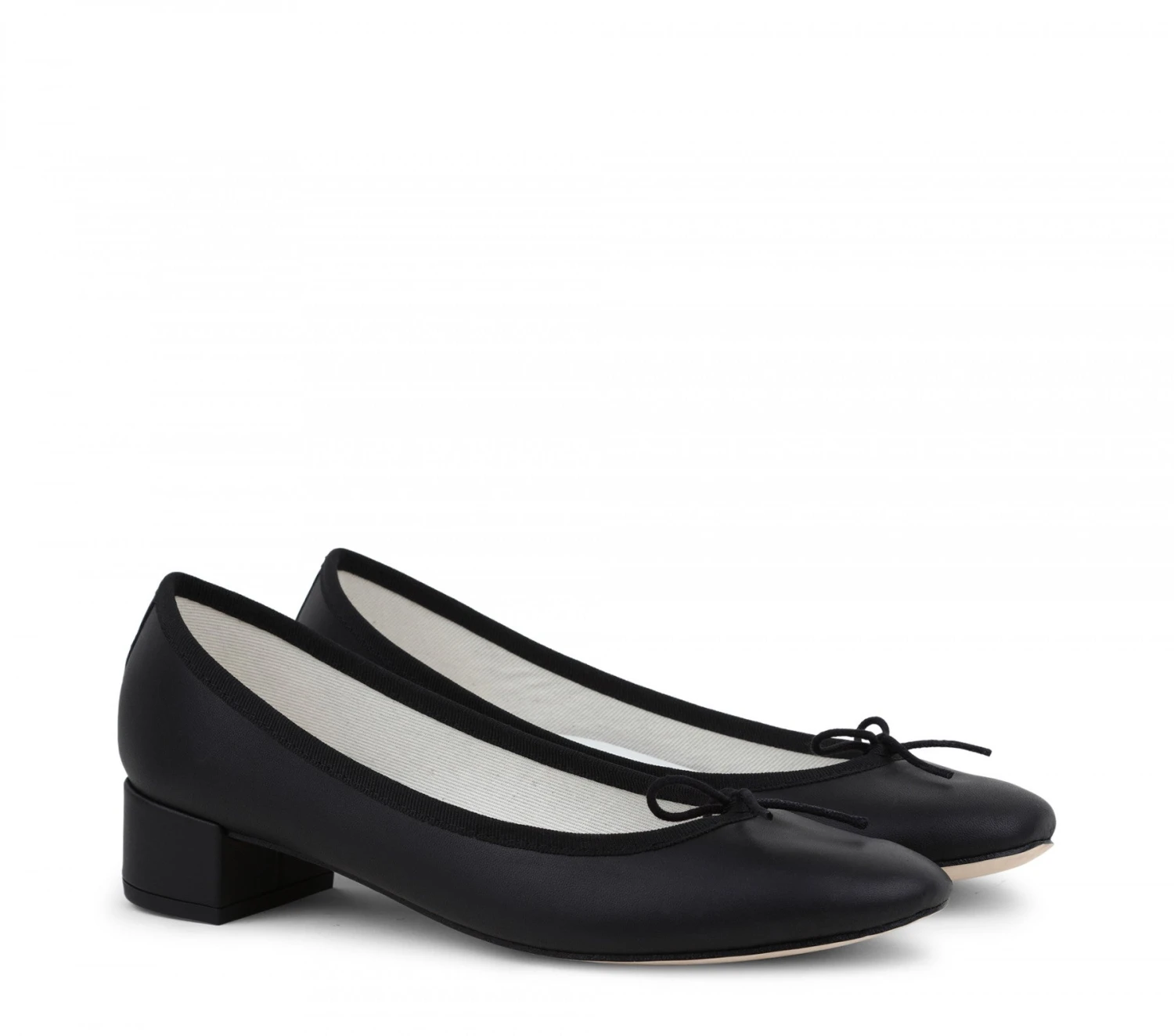 The Camille ballerina takes on the shape of the iconic Cinderella, this time perched on a small heel. Always as comfortable and elegant, it will complement a classic look or be diverted with trendier pieces.