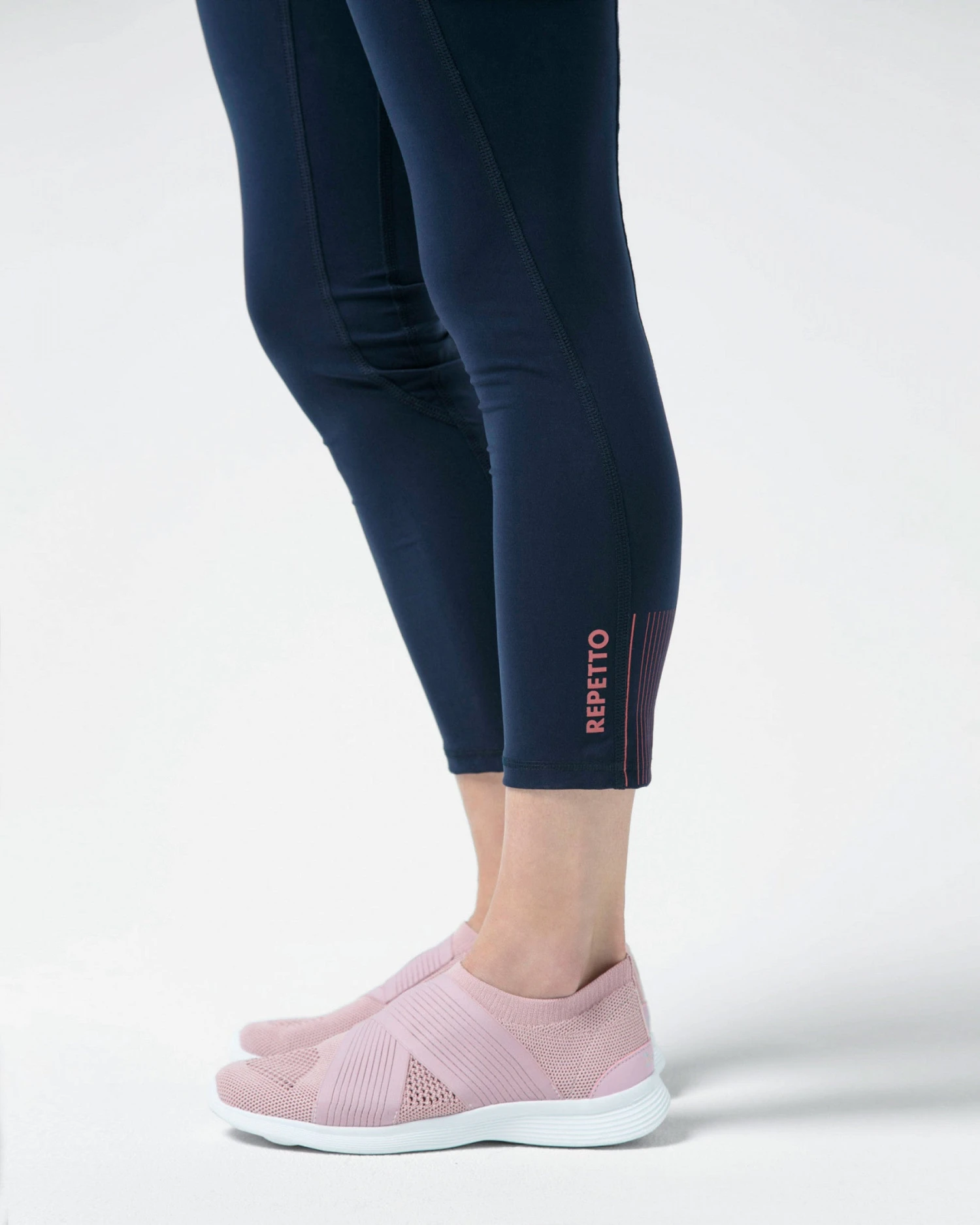 Details: high waist with support at the back. Ergonomic inserts and cutouts. Flat seams. Two side pockets. Elastic effect reflective transfer and Repetto logo on the lower leg.