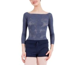This top is a refined piece designed in stretch lace, created in France exclusively for Repetto. By its boat neck, it is worn on the shoulders in order to free the upper body and to emphasize the port of head. The graphics of the lace is a composition of rosettes made with different points. It is worn on a leotard, on a bra or over the underwear. This piece offers a very feminine and distinguished look.