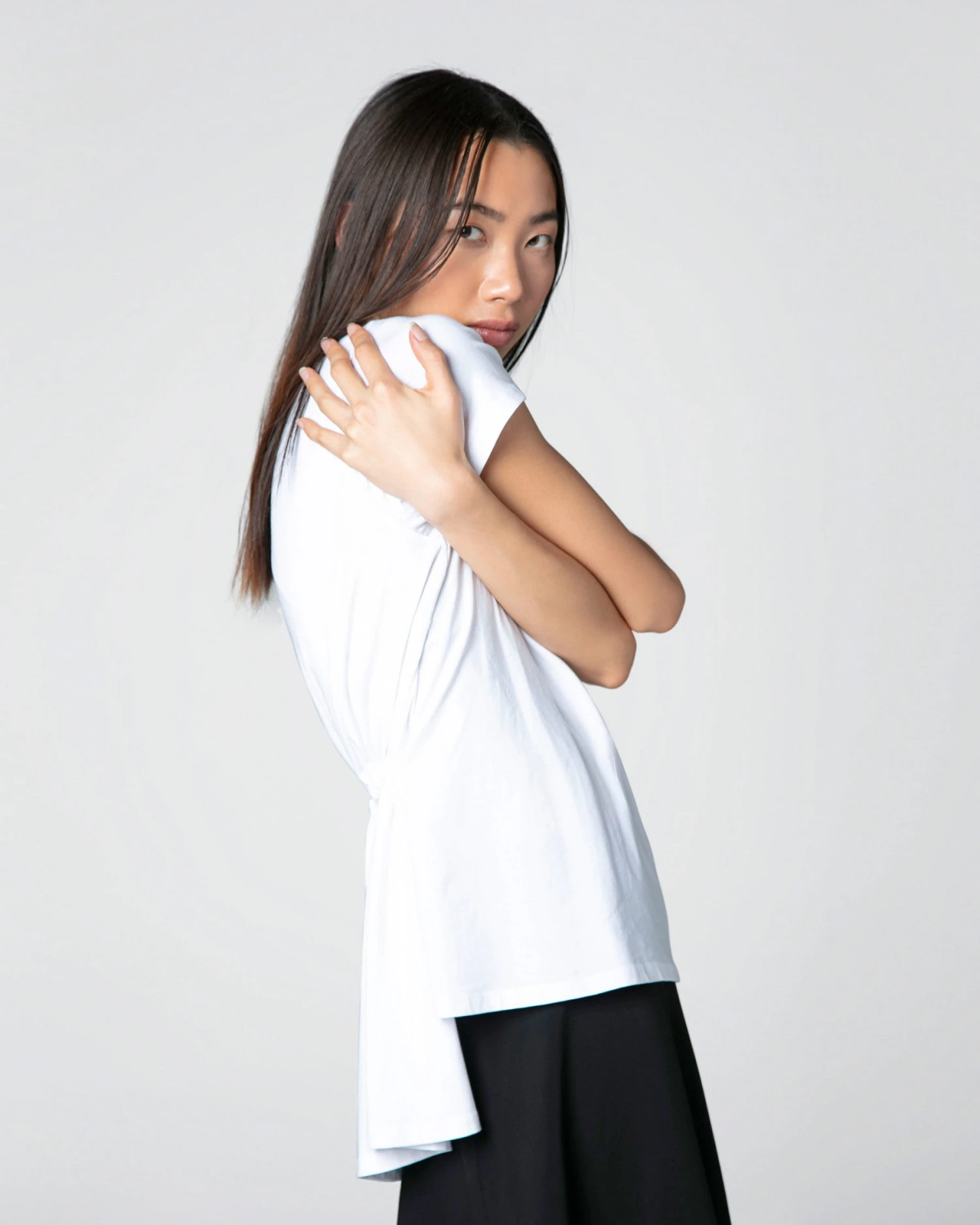 This t-shirt is distinguished by its adjustment link for a pleated effect on the back. Its long cut and longer yoke on the back reinforce the slender character of the silhouette. The softness and fluidity of the mesh ensure optimal comfort.