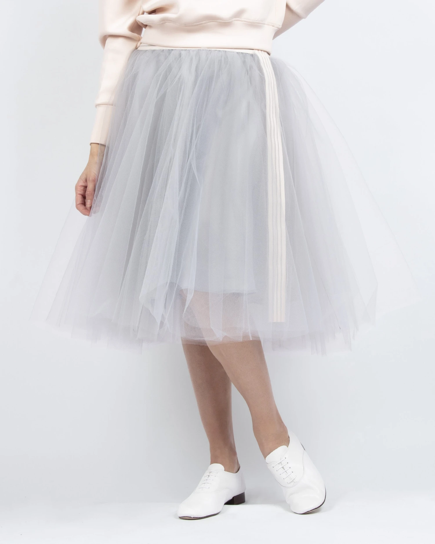 Color : Gray-Blue Details : Long petticoat. 2 overlapping layers of tulle. Refined elastic at the waist and on the left side. Inner lining. Metallic circle with logo R.