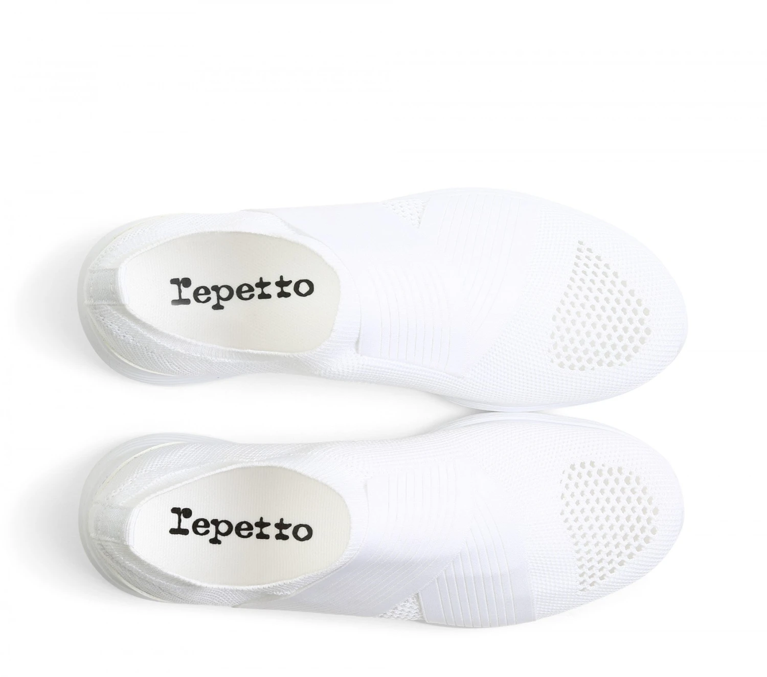 Sneakers affirm the sporting identity of Maison Repetto. The knitted mesh conforms to the shape of the foot like a second skin. It is put on like a sock for optimal comfort. The rubber sole is extremely soft and lightweight. Welded construction, phylon outsole, elasticated band on the top of the foot. Knitted mesh: 95% Polyester – 5% Polyurethane / Sole: 100% Ethylene Vinyl acetate (EVA) / Microfiber yoke: 100% Polyester.