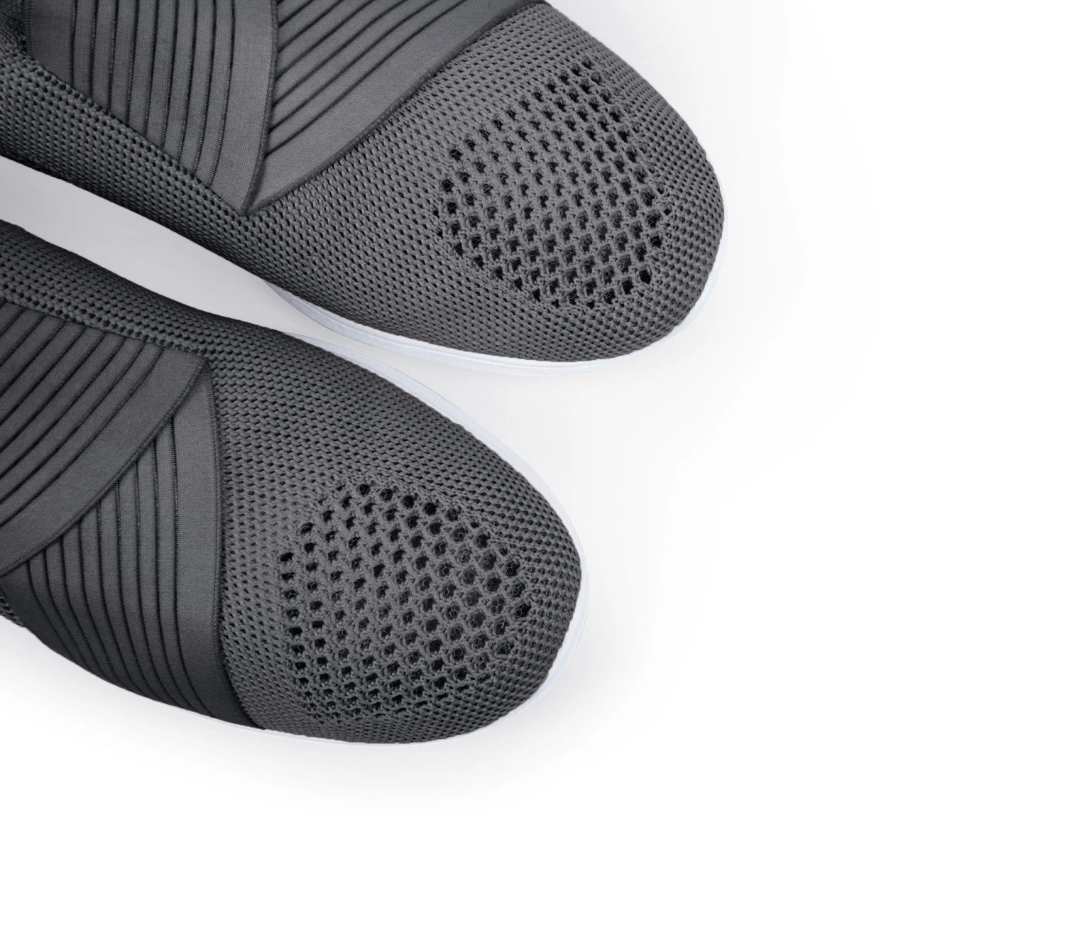 Composition : knitted mesh: 95% recycled polyester- 5% polyurethane / sole: 100% ethylene-vinyl acetate (EVA) / microfiber insert: 100% polyester