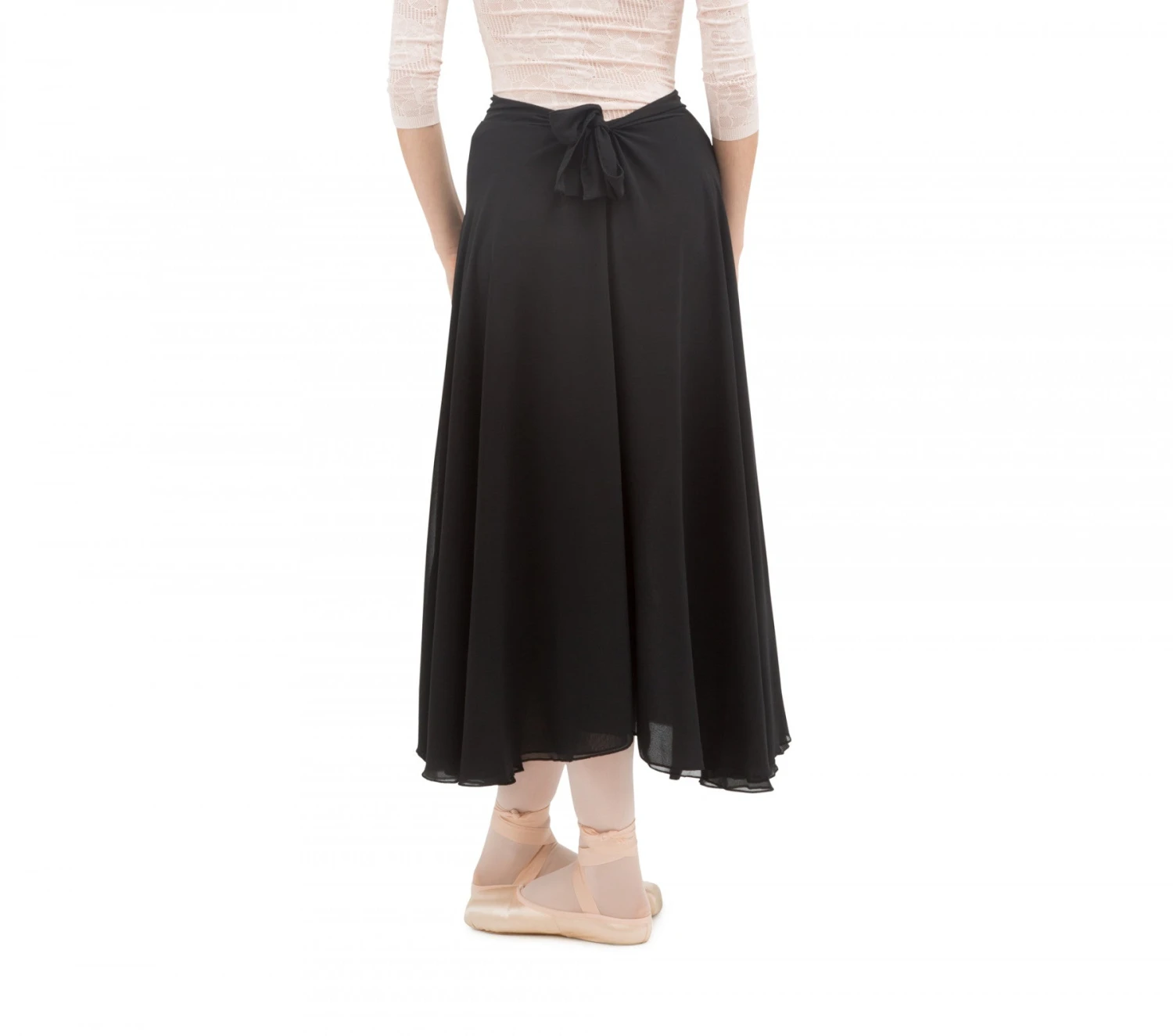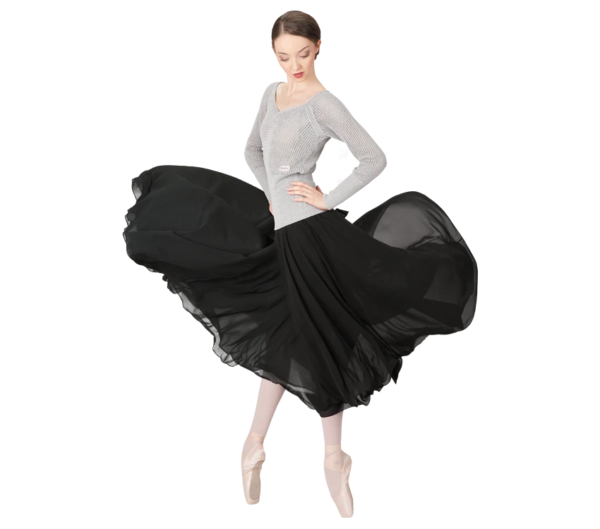 This rehearsal chiffon skirt is perfect for the studio and stage work. Plain on a side with a black basic colour, or Taupe Rose two-coloured reversible, to create the silhouette of its choice. Its tightening lace ties up in the waist allows to adjust it depending on the need. Transparent Repetto logo transfer on the front.