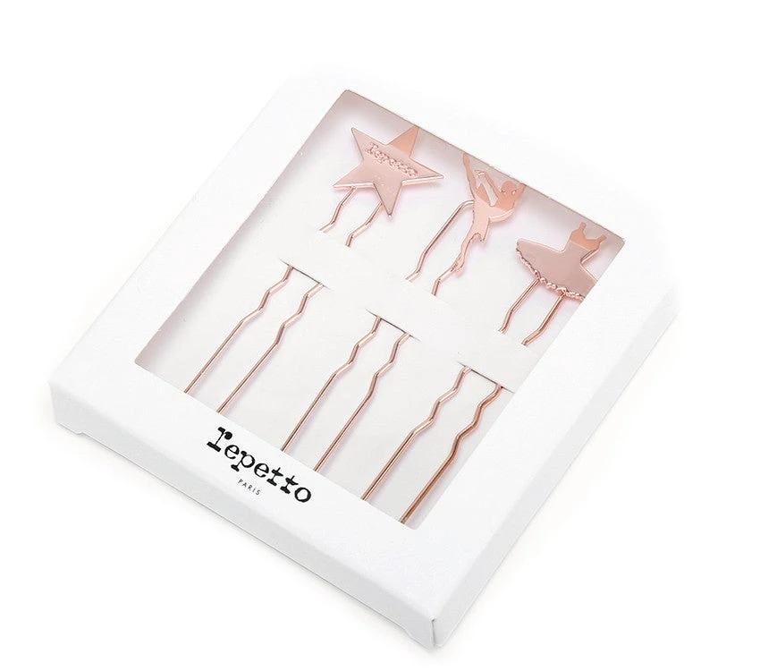 This kit of three hairpins is perfect for dancers who want to accessorize their bun. Three small different charm’s will brighten up the hair of the girl (a tutu, a dancer, and a star). The pink gold finishing reminds of the brand in a discreet and elegant way.