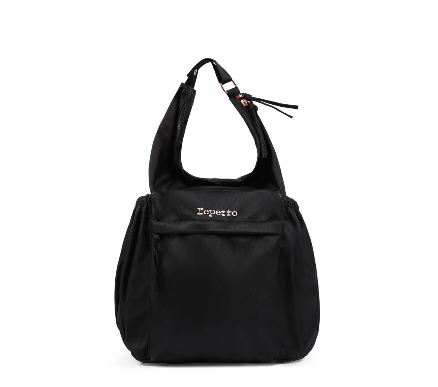 Details : zip closure. Adjustable straps. One zipped front pocket. Two exterior side pockets. Rose gold Repetto logo. Unlined.