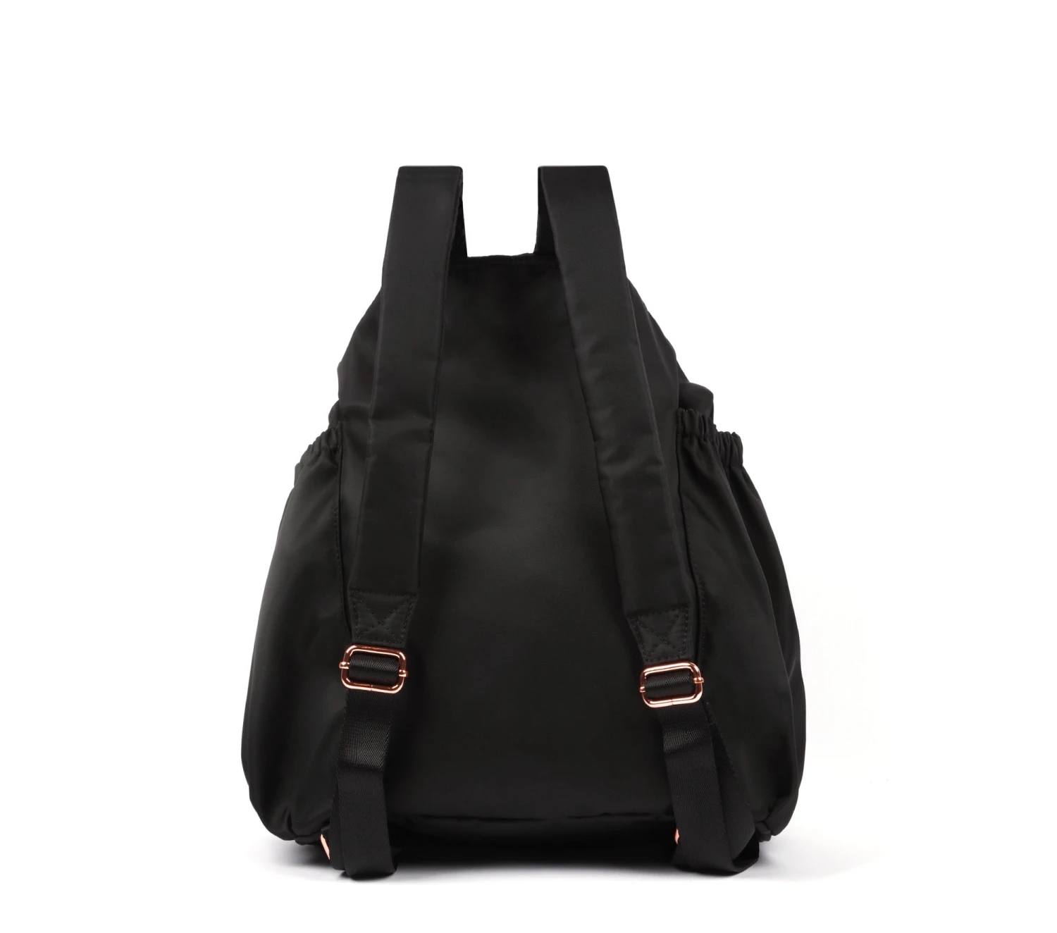 This backpack, in a very practical format, is ideal for all those who wish to move around while having their hands free. Its buckle closure system allows you to attach the top of the bag for a different carry. This originality, combined with an elegant and supple nylon material, make it a modern and feminine bag.