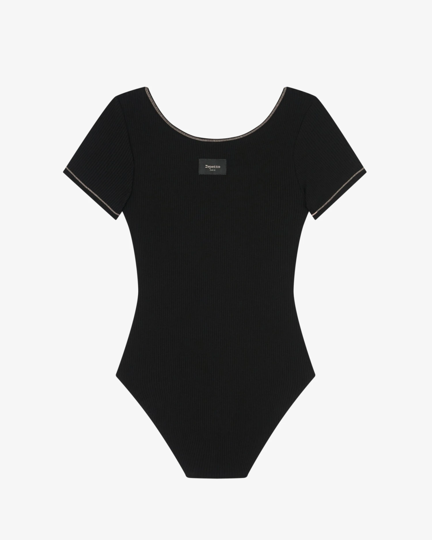 Details : Rib leotard. Short sleeves. Dancer neckline. Repetto label on the back.