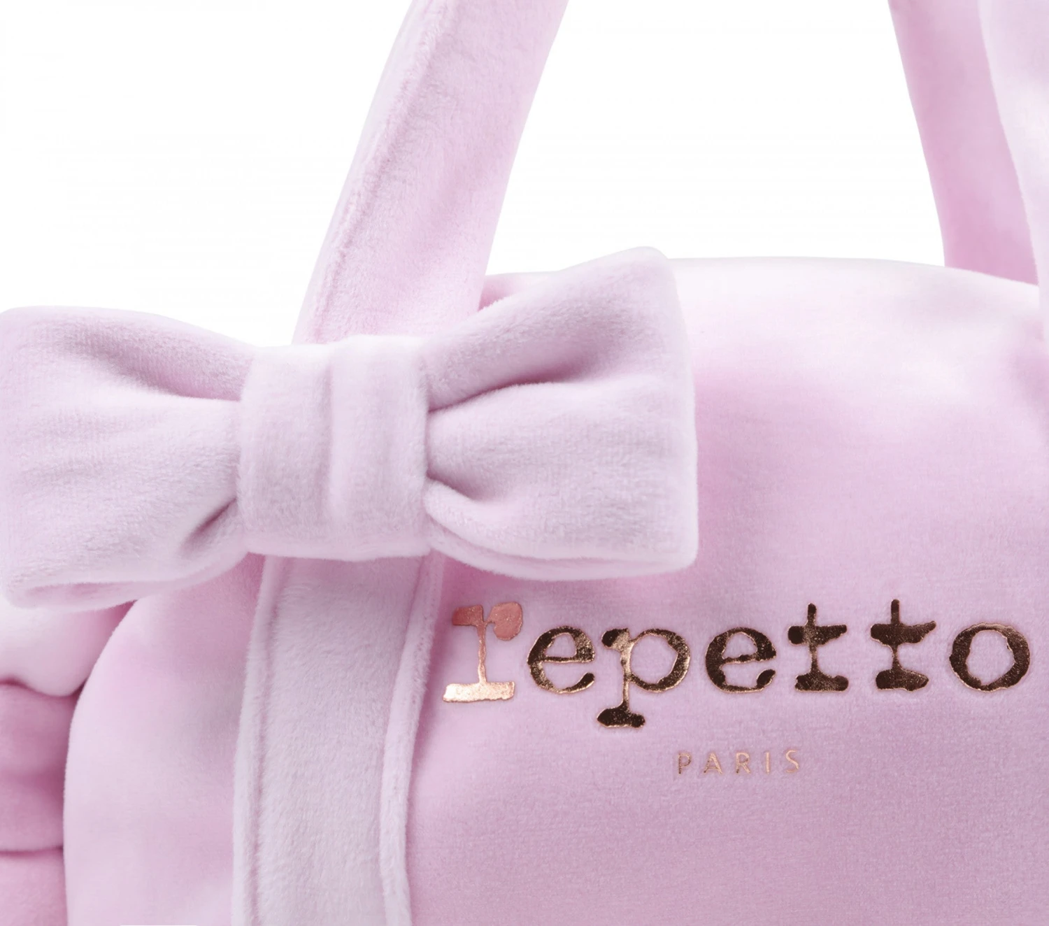 This small bag for girls, with a sober and elegant design, imbued with the strong identity of Repetto, will delight all little girls who are passionate about dancing. The subtle details of this model, through the rose gold finishes, and the satin ribbon, reveal all the elegant and feminine character specific to Maison Repetto. For a gentle winter, this velvet version of the iconic duffel is enhanced with a delicate pink bow on the front.