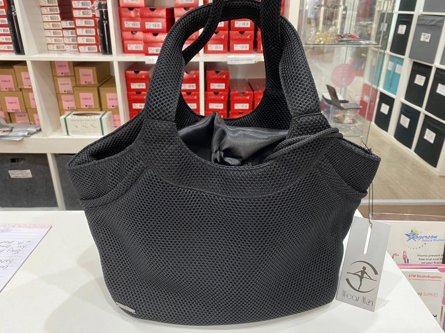 A small size quilted tote bag, honeycomb textured, with inside compartment. Satin lining and drawstring cinch closure.