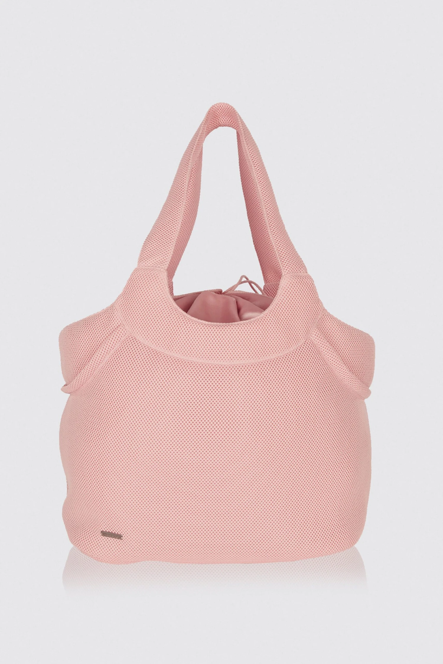 A small size quilted tote bag, honeycomb textured, with inside compartment. Satin lining and drawstring cinch closure.